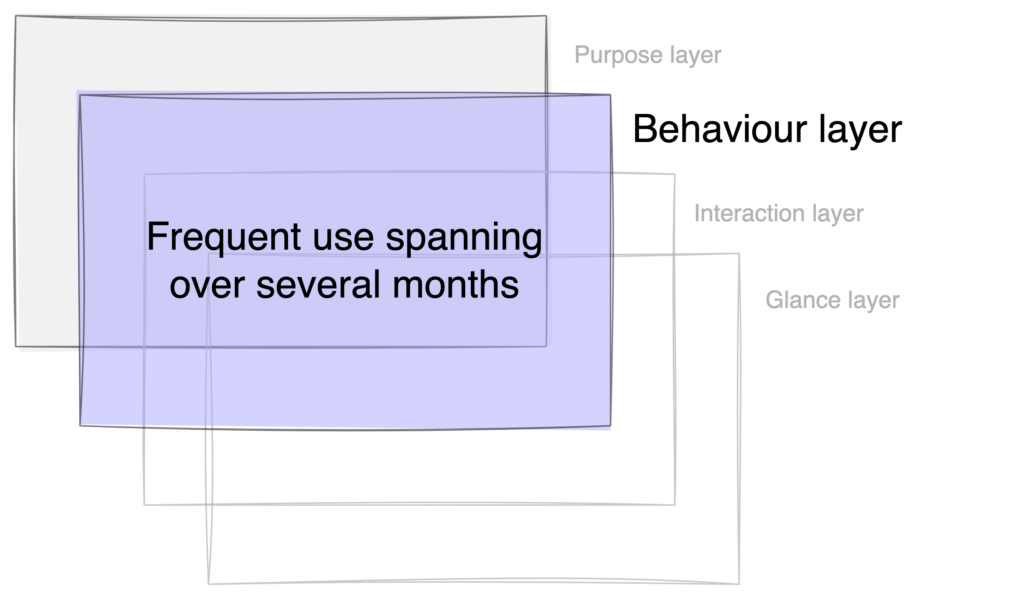 The Behaviour Layer delves into the subtle yet transformative aspects of user experience that only reveal themselves with prolonged use of the product. Unlike the more immediate interactions of the glance and interaction layers, the behaviour layer emerges over time as users integrate the product into their daily routines. It requires users to live with the product, allowing them to witness how it shapes their habits and enhances their productivity.
