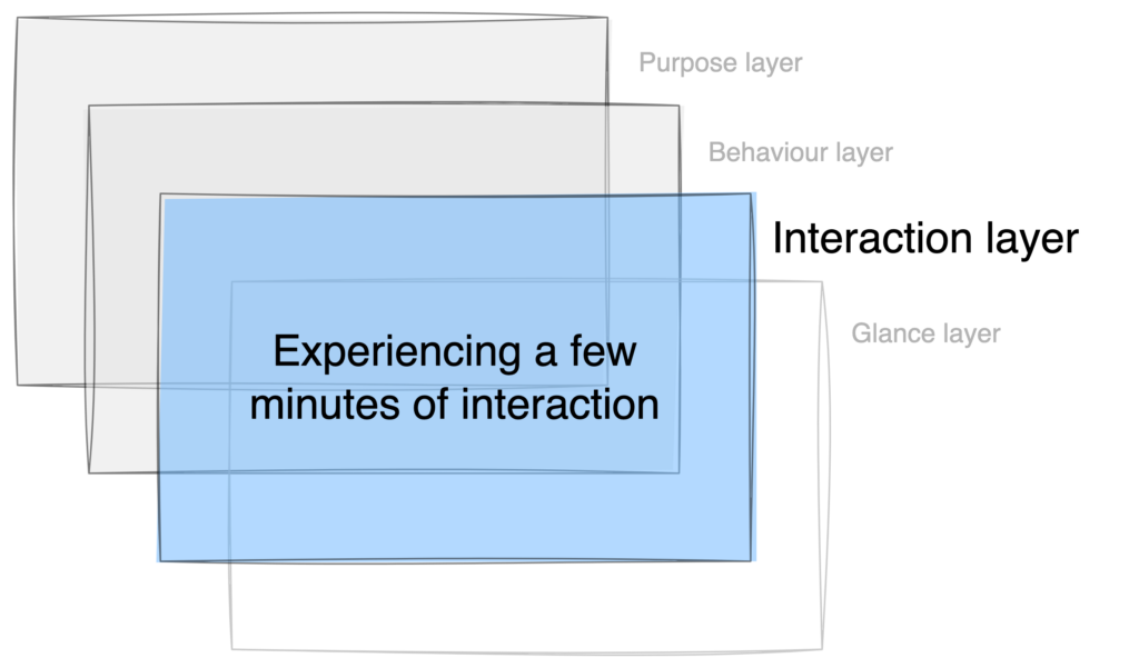 The Interaction Layer serves as the essence of the user experience, requiring active engagement with the product to fully appreciate its functionality. In contrast to the glance layer, which relies on visual cues alone, the interaction layer demands hands-on interaction to be truly understood. This entails users immersing themselves in the product, navigating its features, initiating user flows, and completing tasks to achieve their objectives. When users interact with an application, they’re essentially engaging with this layer.