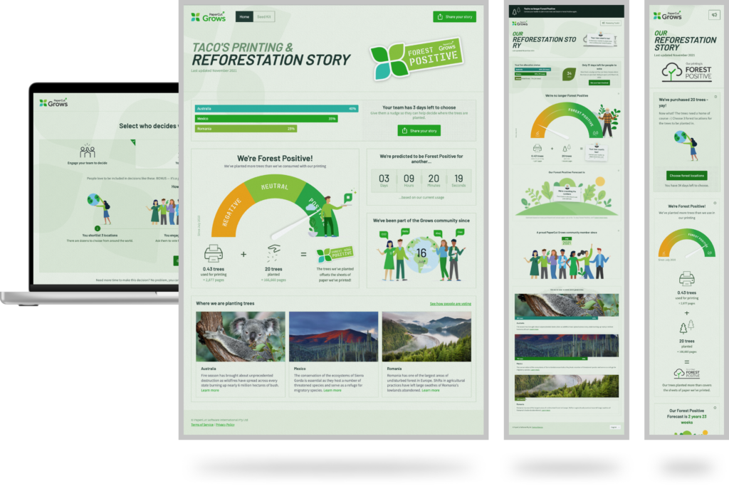 Through internal discussions and customer interviews, we recognised a communication challenge regarding this concept. Consequently, we saw the need for a new metric to help customers gauge their impact and track the number of trees their organisation has used in paper vs planted.